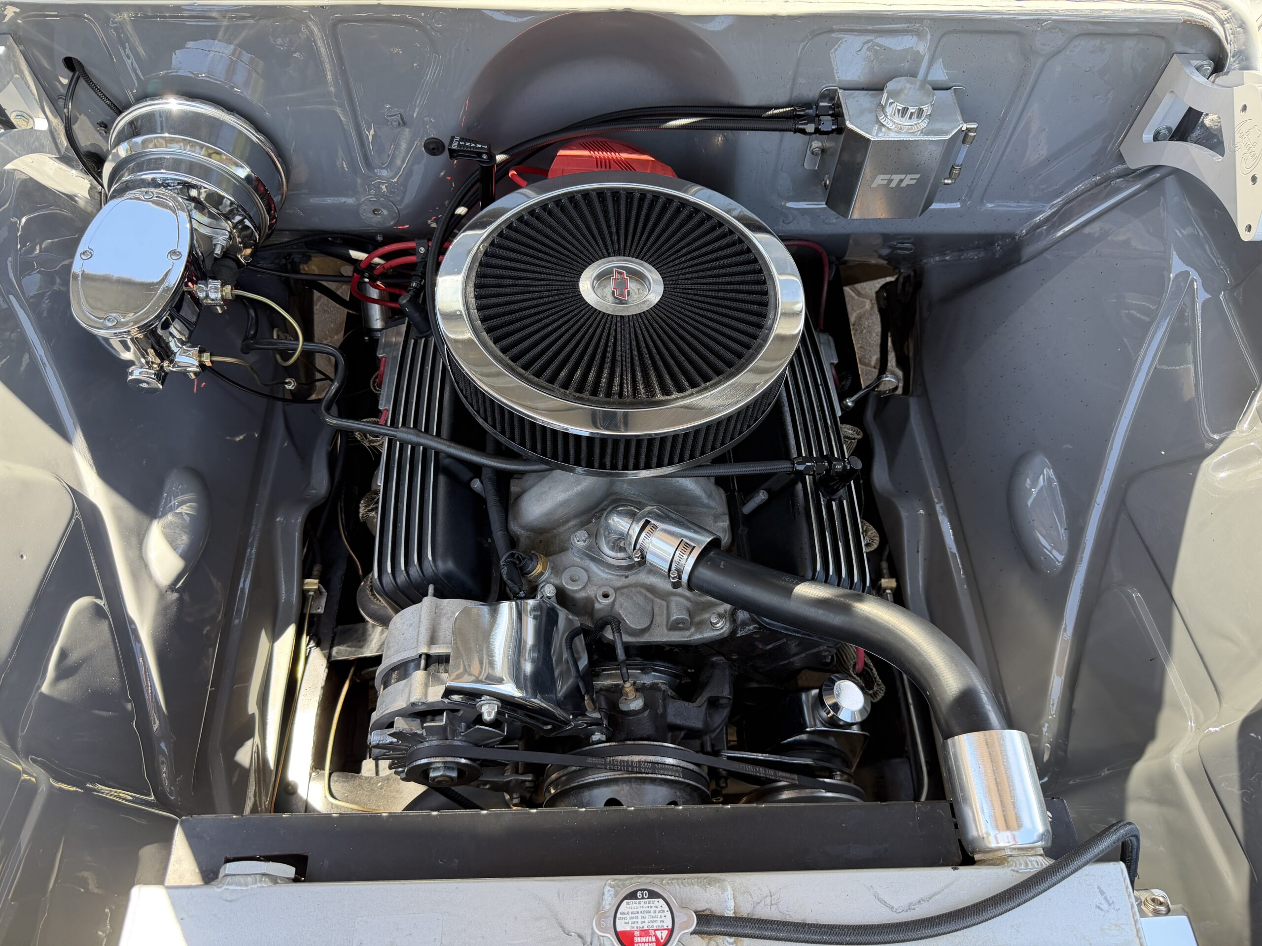 The interior has been completely transformed with professional reupholstery on the seats, a redone dashboard, and brand-new carpeting. Modern convenience has been added through a new high-end sound system. The exterior is finished with a set of new rims that complement the classic "four-headlight" 1958 design.